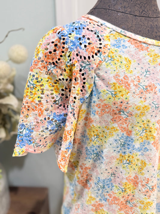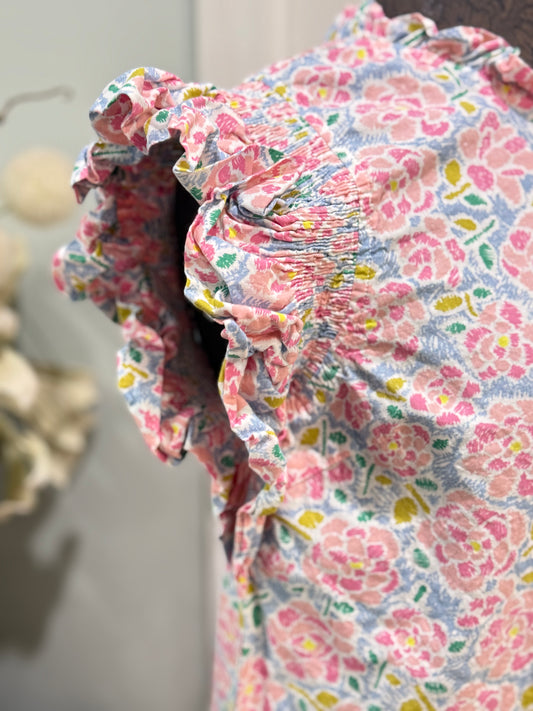 Womens Jodifl Floral Smocked Sleeve Blouse Small