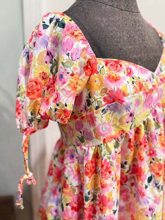 Womens Floral Smocked Dress XL