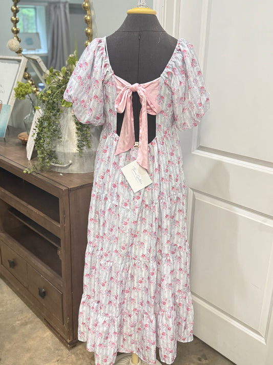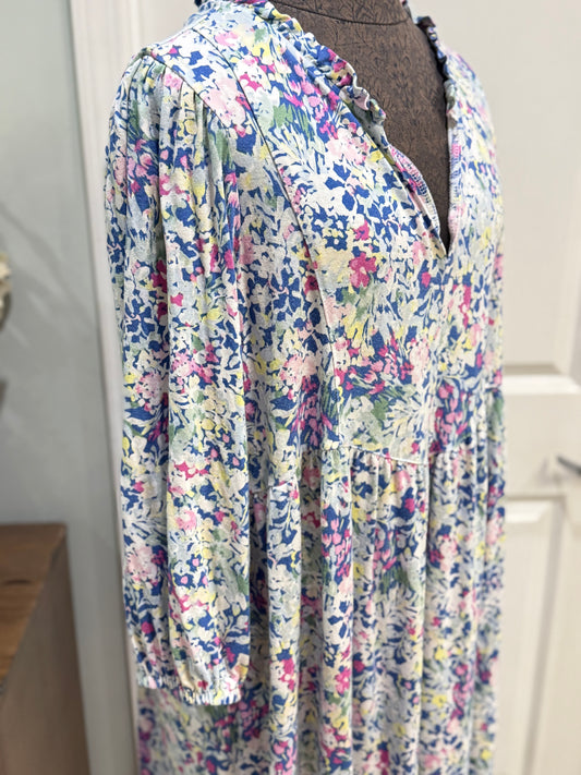 Womens Peach Love Blue Floral Dress Large NWT $72