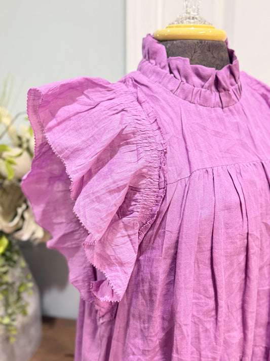 Womens SEA New York Purple Ruffle Neck Dress Large Retails for $450