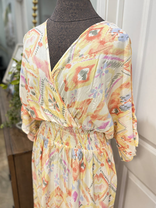 Womens Floral Frilly Orange Smocked Dress Med-XL NEW