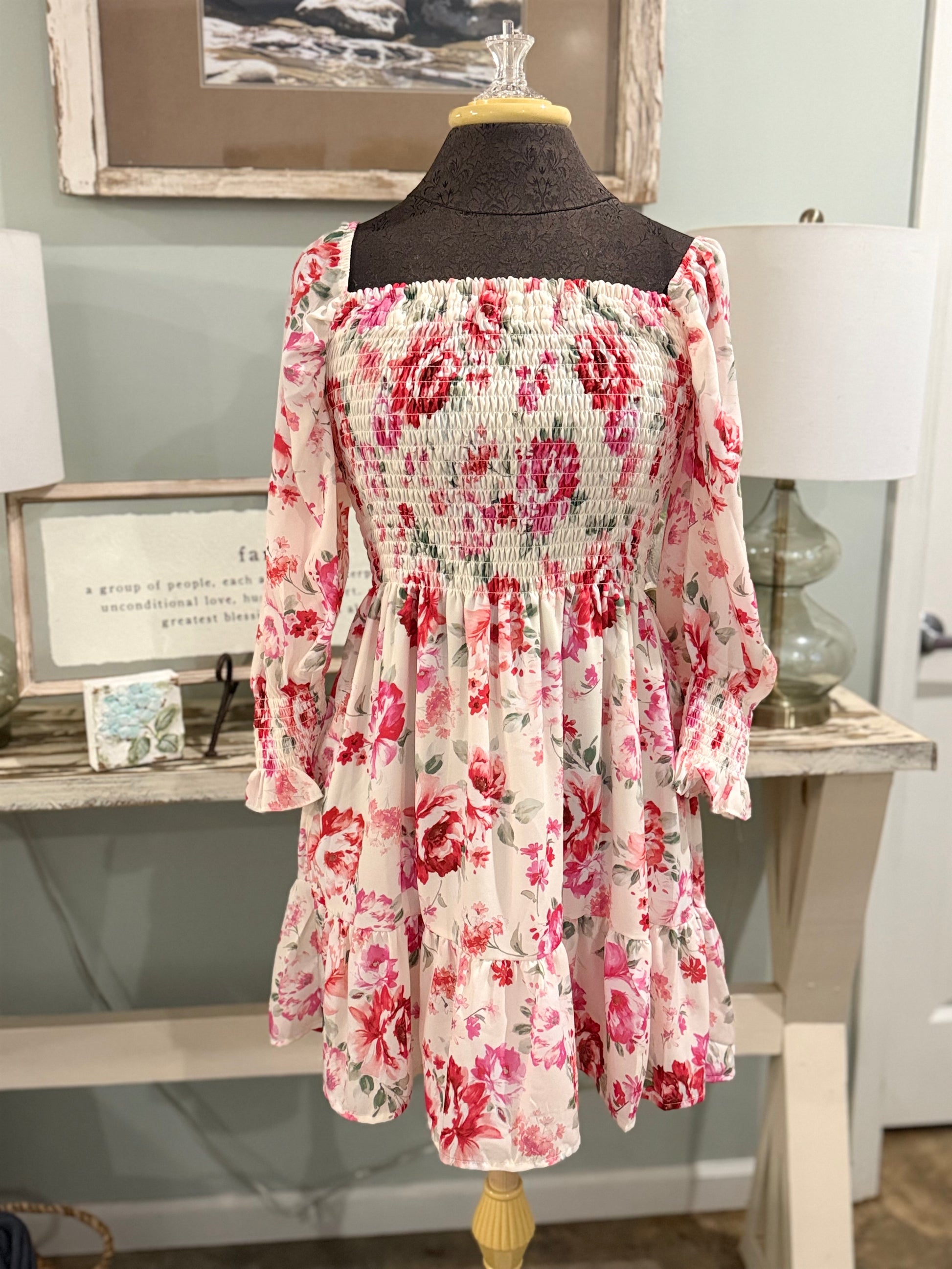 Womens Peach Love Smocked Floral Dress Small