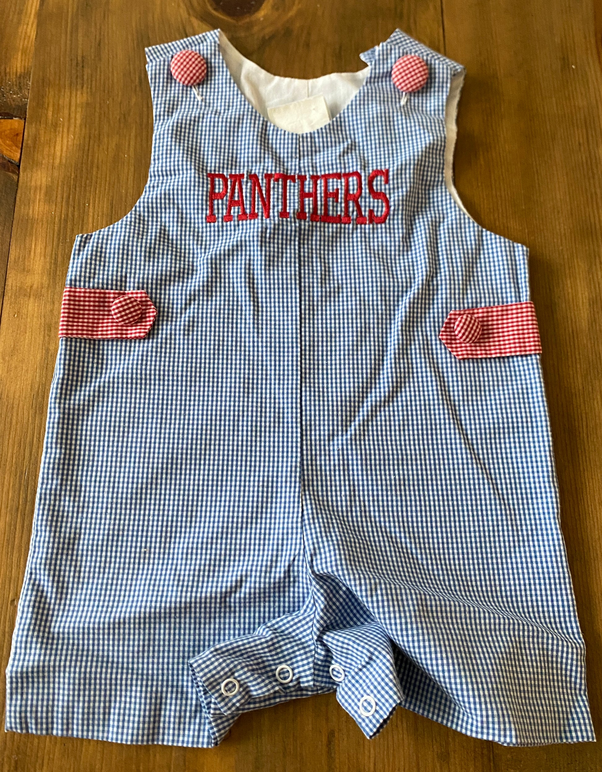 Boys Natalie Grant Panther Gingham Onesie Sz 9mth