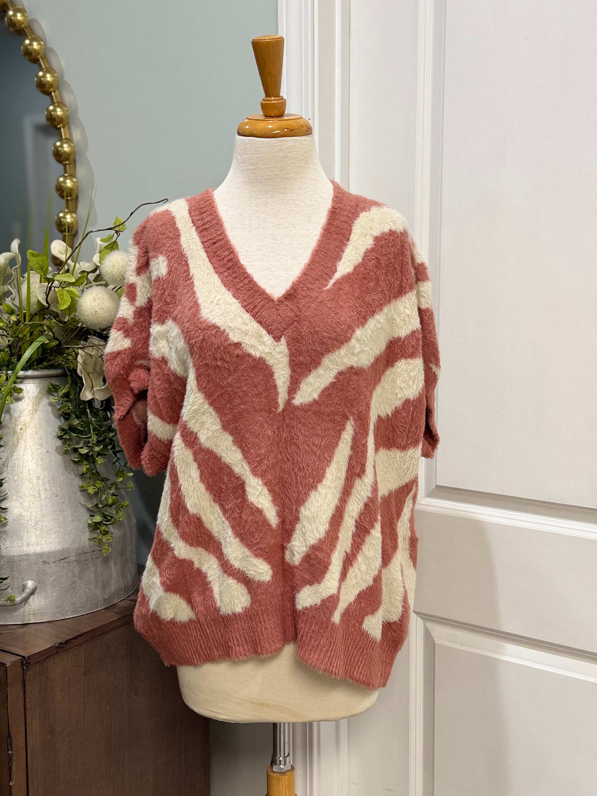 Womens Olive & Leaf Short Sleeve Sweater Size Medium