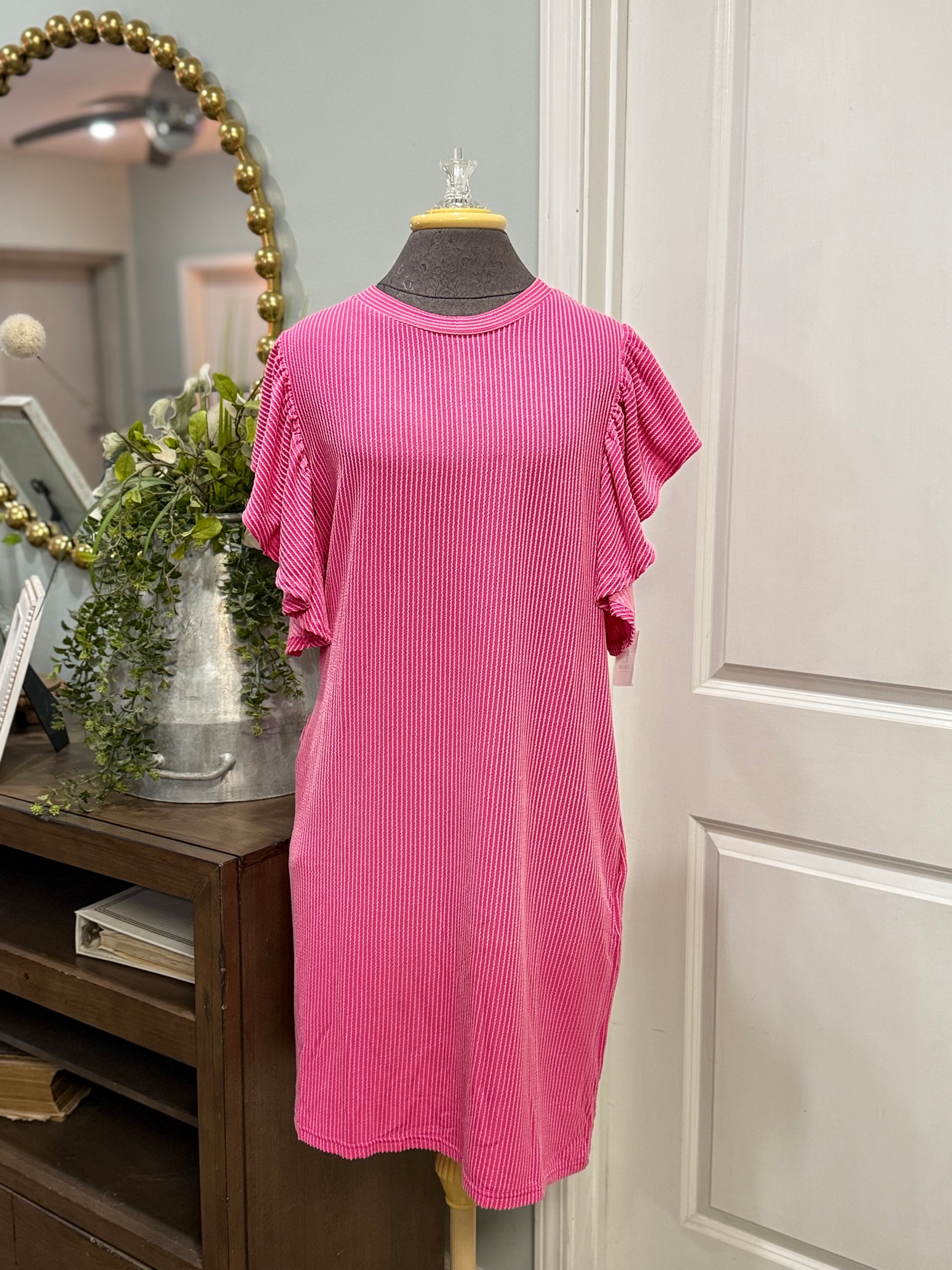 Womens Pink Ribbed Dress Large
